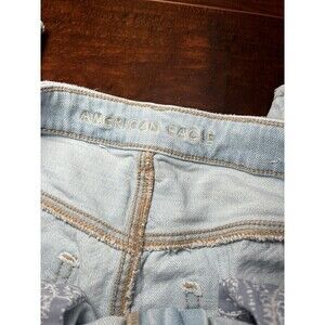 American Eagle Extreme Distressed Light Wash Jean Womens Sz 10. Pre owned there is lot of distressing. Please fully inspect photos for item condition and rough measurements.