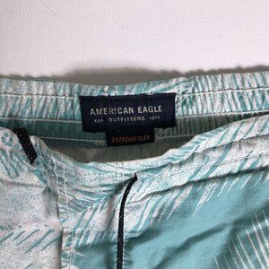 American Eagle Extreme Flex Board Shorts Size XL Blue W/ White Palm Leaves J19.