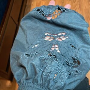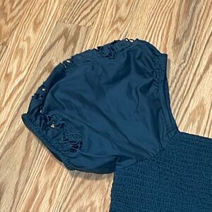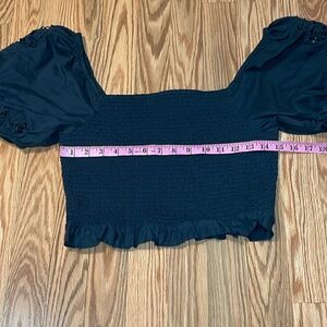 American Eagle Eyelet Smocked Crop Shirt, grey, Large