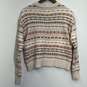 American Eagle - Fairisle Snowdrift Oatmeal Fun Design Crewneck Sweater Size XS