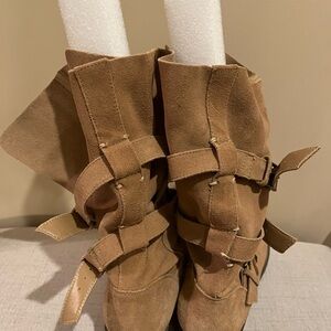 American Eagle Fan Suede Buckle Strap Boots, 9.5