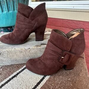 American Eagle Faux Leather Chunky High Heel Ankle Boots SZ 6.5 Coquette Chic