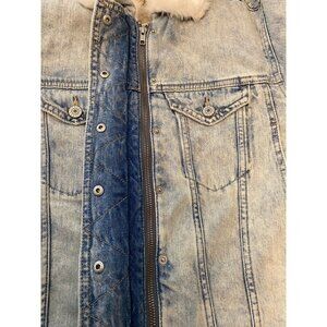 American Eagle Faux Shearling-Lined Denim Jacket With Button & Zip Closure XS