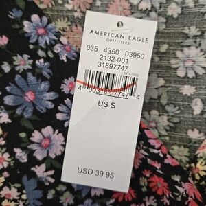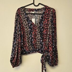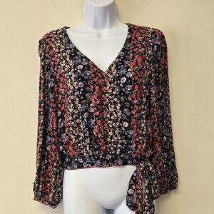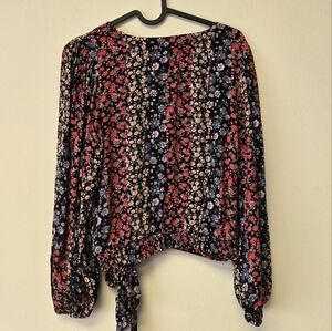 American Eagle Faux Wrap Balloon Sleeve Floral V-Neck Top S