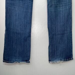 American Eagle "Favorite Boyfriend" dark blue stretch denim jeans in Great pre-owned condition! The bottoms in the back are somewhat distressed. (see last photo)