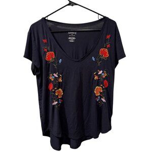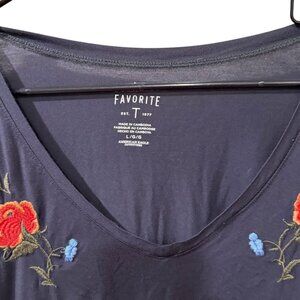 American Eagle Favorite T-Shirt With Floral Embroidery V-Neck Size large