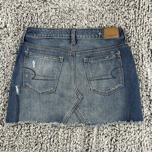 American Eagle Festival Mini Skirt Button Fly Distressed Denim Women's Size 2