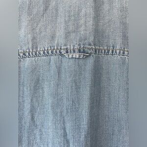 American Eagle Fit Flare Blue Chambray Denim Dress Long Sleeve Button Up Size S