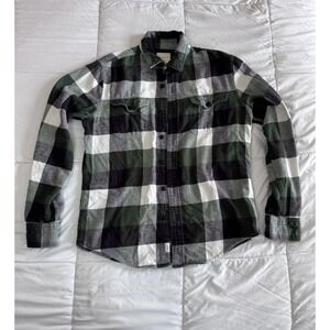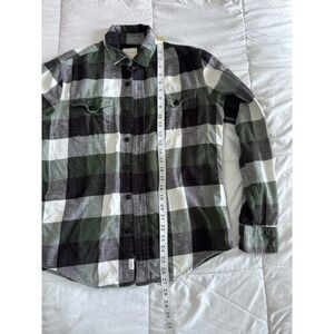 American Eagle Flannel Green Black, White Plaid button down shirt Size Small EUC