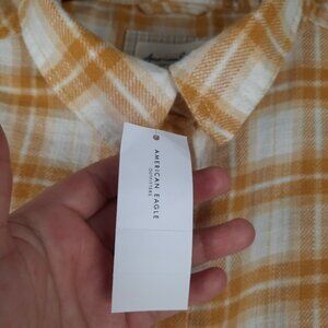 American Eagle Flannel Plaid Semi Cropped Button Down Top