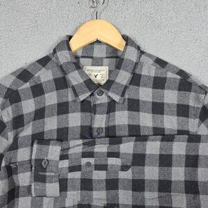 American Eagle Flannel Shirt Mens Size Large nGray Black Plaid Brushed Rugged NW