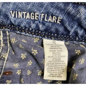 American Eagle Vintage Flare Jeans, Pocket Flaps, Women's Size 2 (28x30), Stretch, Distressed, Frayed Cuff, Low Rise, Med fade Wash.