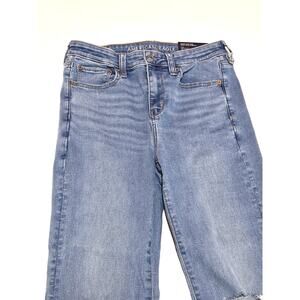 Get ready to rock these stylish American Eagle flare jeans! With a super high rise and next-level stretch, these jeans are designed for ultimate comfort and a flattering fit. Perfect for any casual occasion, these jeans will quickly become a staple in your wardrobe. These jeans are new with tags! Thanks for shopping with us!
