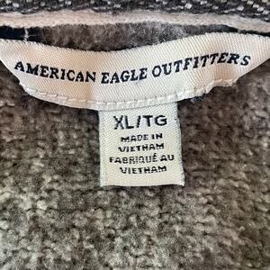American Eagle Fleece Hoodie Gray Zip Front Aztec Trim Sz XL Fall Casual Cozy