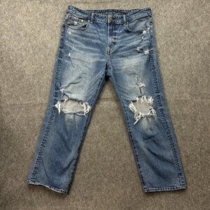 American Eagle Flex Athletic Loose Jeans Men's Size 36 X 30 Distressed Denim
