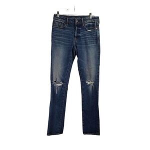 American Eagle Flex Men’s Size 30x34 Blue Slim Fit Distressed Straight Leg Jeans