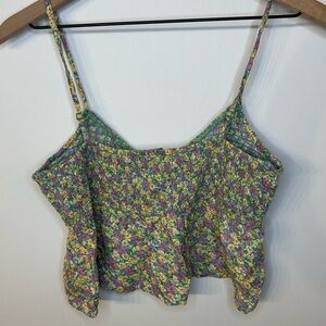 American Eagle Yellow, Green, and Purple Floral Baby Doll Sleeveless Top, Size Medium.