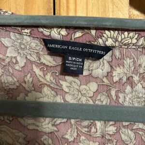 Great condition. Size S. Full floral boho chic Bell sleeve blouse. Light purple with light pink and purple flowers. Has ruffle at bottom part and sleeves. Open crosscross slit in front. So boho. Measurements are21 pit to pit and 29 inches long.