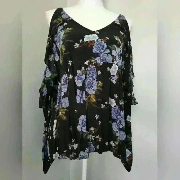 American Eagle Floral Cold Shoulder Blouse Size Large In Excellent Condition