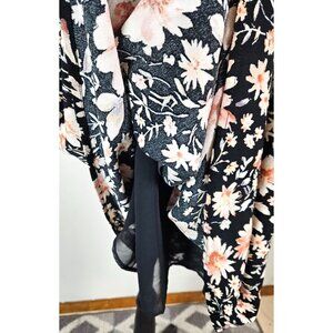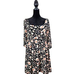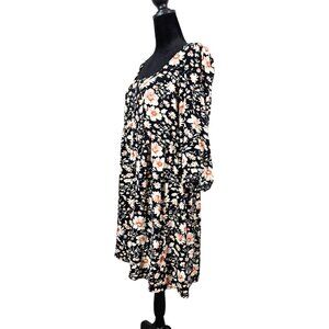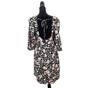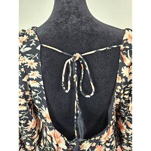 American Eagle Floral Print Black Dress Puff Sleeves & Open Back W/ Tie Detail M