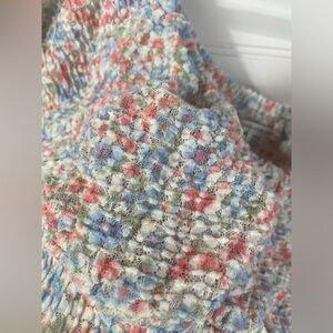 American Eagle Floral Puff Sleeve Keyhole Tie Front Crop Top Small Womens GUC