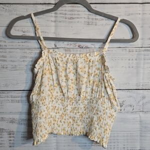 American Eagle Floral Smocked Crop Top - White and Yellow Womans Size Small