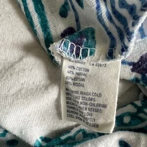 American Eagle White with Blue Floral Print. Very soft. Short Sleeves. Buttons Down Back. Size S/P