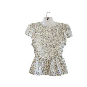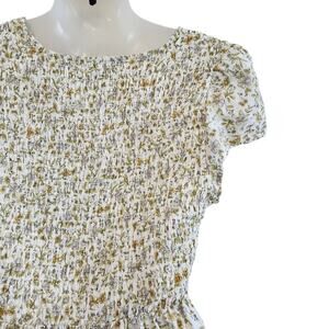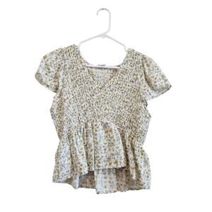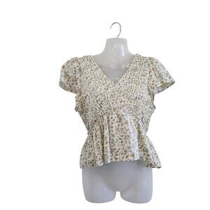 American Eagle Floral V-Neck Smocked Babydoll Blouse Multicolor Size Medium