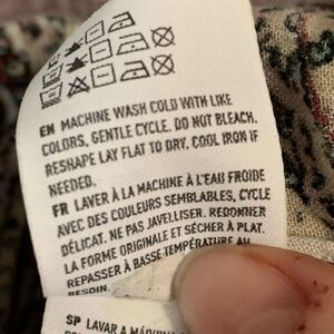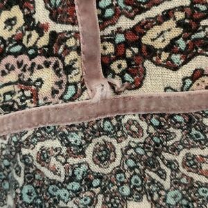 Beautiful boho paisley print blouse with fitted sleeves that flare out, and velvet detailing. It has ties at the neck. It has a little wear to a part of the velvet(pictured) but is overall in excellent condition.