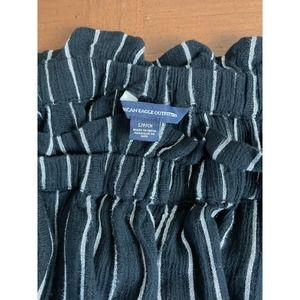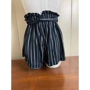 American Eagle Flowy Belted Black White Striped Shorts Small