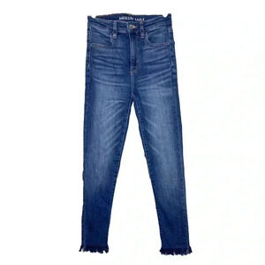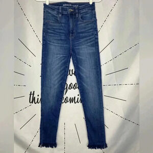 American Eagle Frayed Super High Rise Jegging Crop Jeans