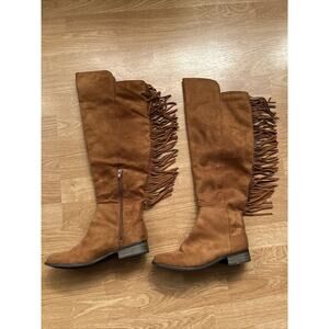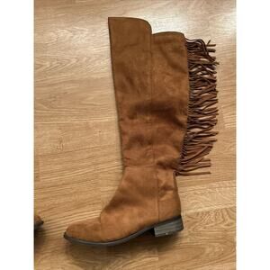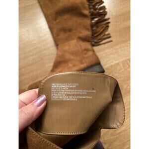 American Eagle Fringe Over the Knee Boots Faux Suede Hard Sole Natural 7 Cowboy
