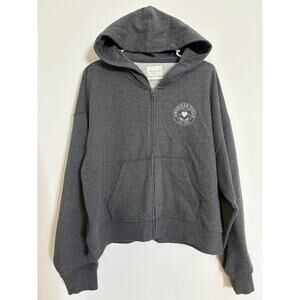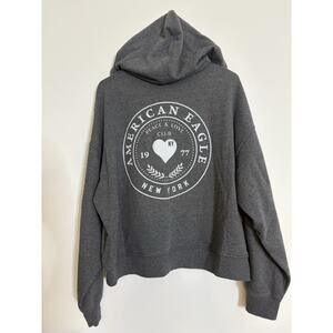 American Eagle Full Zip Hoodie Fleece Jacket Size Large Gray Graphic Pockets EUC