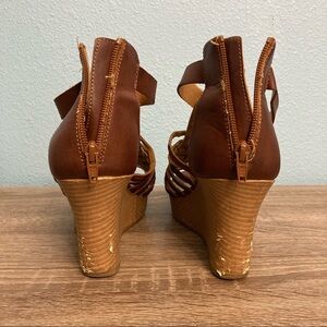 American Eagle Gladiator Peep Toe Wedge Heels - Brown - Size 11