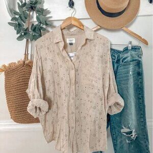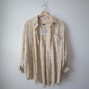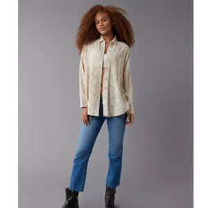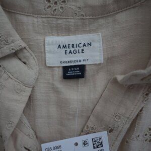 American Eagle Go Big Oversized Eyelet Embroidered Shirt | S