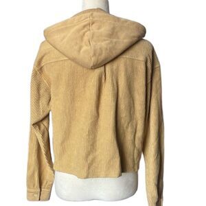 Stylish gold corduroy button-up Raglan semi-cropped lightweight jacket. Features a front pocket and cozy hood. Lightweight and in excellent condition! Perfect for Fall and Spring! Relaxed fit, and a little oversized.