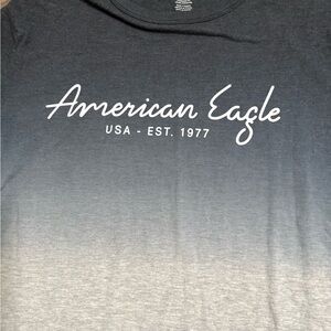 Chic gradient tee with American Eagle script. Dark to light gray transition.