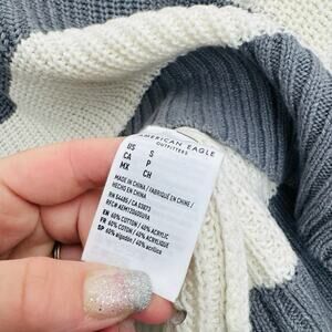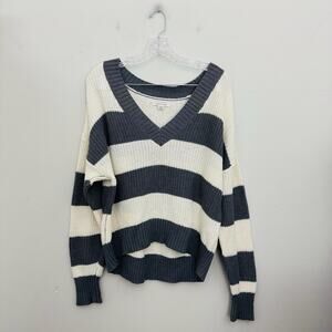 American Eagle Gray And White Striped Knit V Neck Pullover Sweater Women’s S