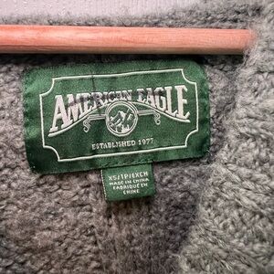 American Eagle Gray Cable Knit Sweater with Hood Size XS