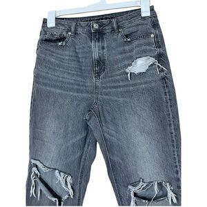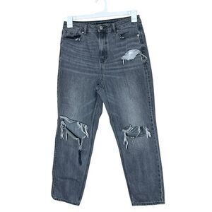 American Eagle Gray Distressed Mom Jeans Size 10 short. Good condition. Heavy distressing. High rise.