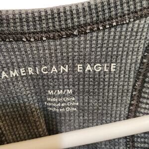 American Eagle Gray Knit Rib Racerback High Neck Casual Crop Tank Top Medium