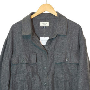 American Eagle Gray Oversized Shacket Button Down Soft Cozy Fall Layering L