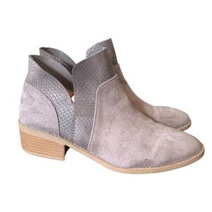 American Eagle Gray Suede with Faux Snakeskin Trim Ankle Booties Size 7