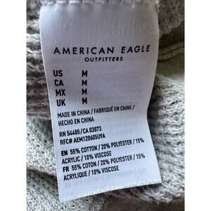 American Eagle Gray Tie Neck Henley Top Medium, waffle knit material. Tag indicates Jegging fit.