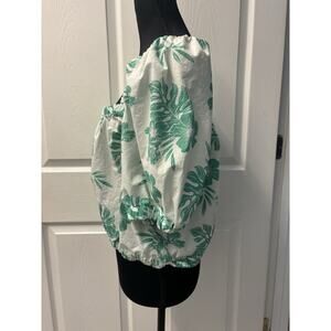 The American Eagle Green and White Peasant Top XL is a stylish blouse designed for women. Made by American Eagle Outfitters, this top features a classic peasant theme with a white color and comes in a size XL. It is a regular fit top that is perfect for everyday wear and can be easily paired with different bottoms for a variety of looks.