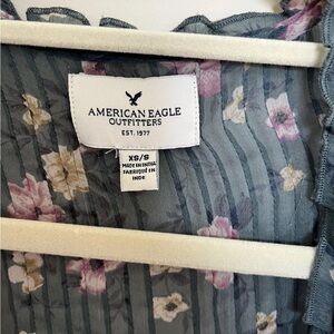 American Eagle Green Floral Sheer Ruffle Cardigan