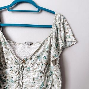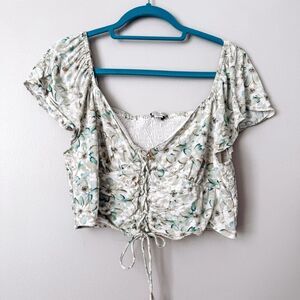 American Eagle Green Floral Short Butterfly Sleeve Cropped Top Size Large
