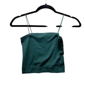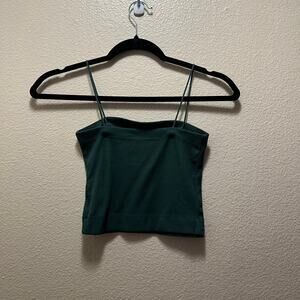 American Eagle Green Ribbed Tank Top Crop Top Spaghetti Strap Size Small