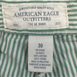 A clean classic for summer—these American Eagle shorts feature crisp vertical green and white stripes, 100% cotton construction, and a classic fit. Complete with front and back pockets and a button-zip fly, they’re perfect for weekend style or casual outings.