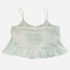 Teal and white tie-dye cropped ruffle lightweight cotton tank top in size WOMENS SMALL. Lightweight thin material, adjustable straps and ruffle bottom. The label has been marked with a sharpie that you can kinda see through the back (as pictured). Only worn once and in like new condition.